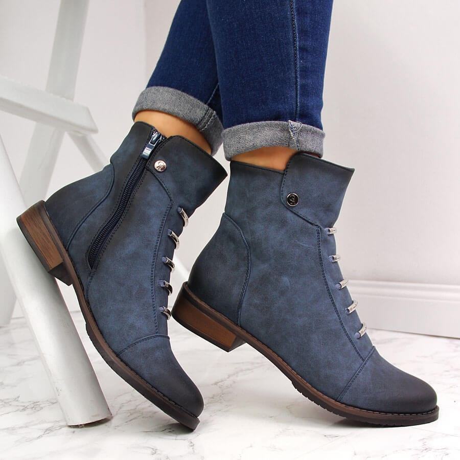 Botki damskie z ozdobami ocieplane niebieskie Jezzi ASA62-16