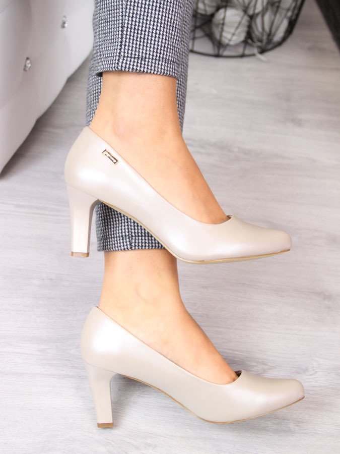 Czółenka na słupku perłowe nude Sergio Leone