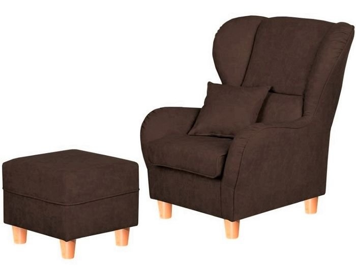 Fotel z podnóżkiem tapicerowany ekoskóra ciemnobrązowy Cork