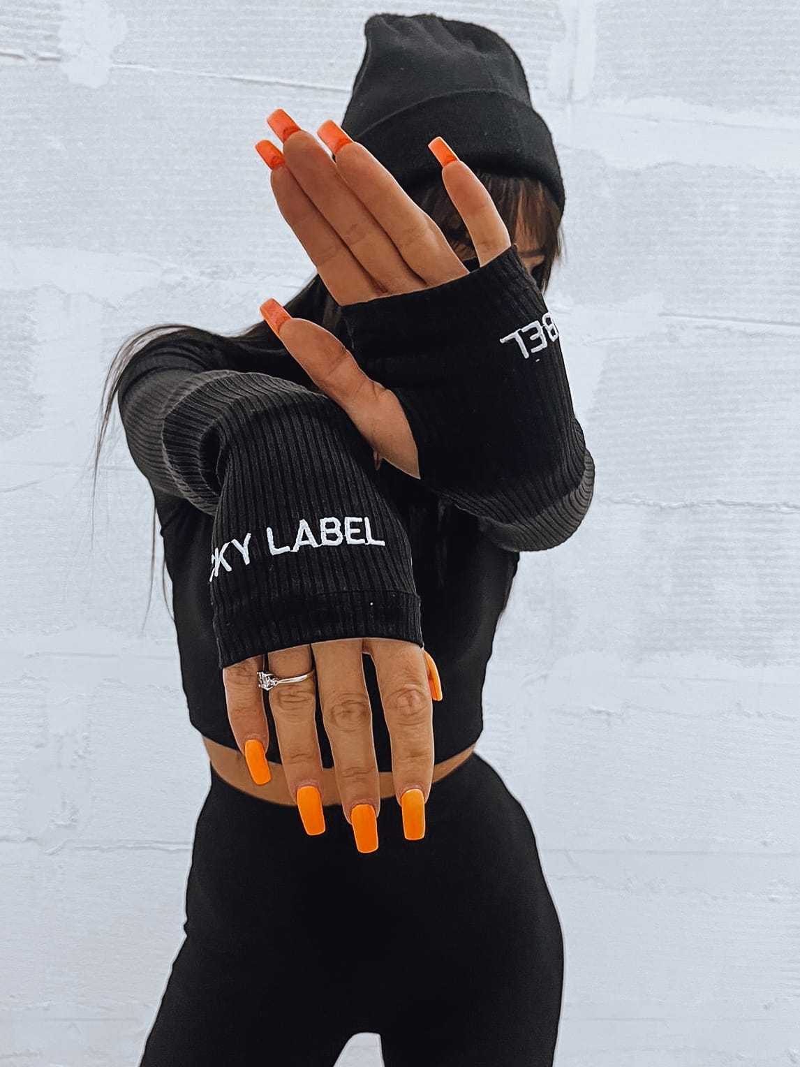 Komplet prążkowany z napisa na rękawach czarny Gabbs W7