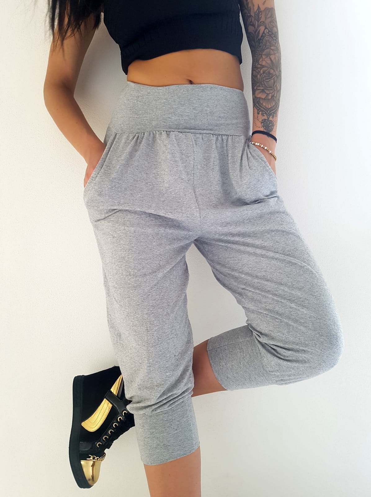 Spodnie alladynki krótkie jasnoszare
