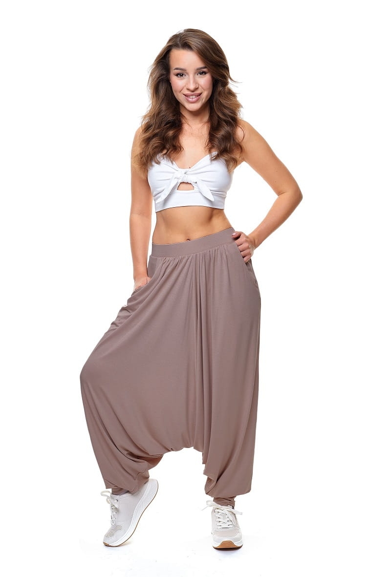 Spodnie haremki dzianinowe z niskim krokiem cappuccino
