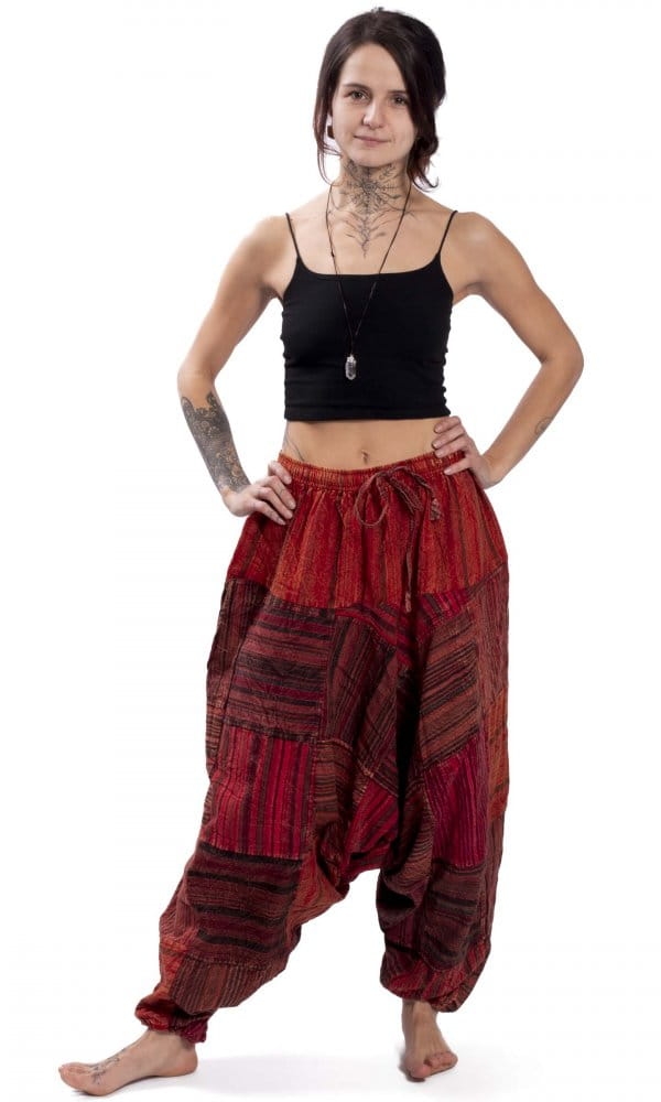 Spodnie haremki patchwork czerwone