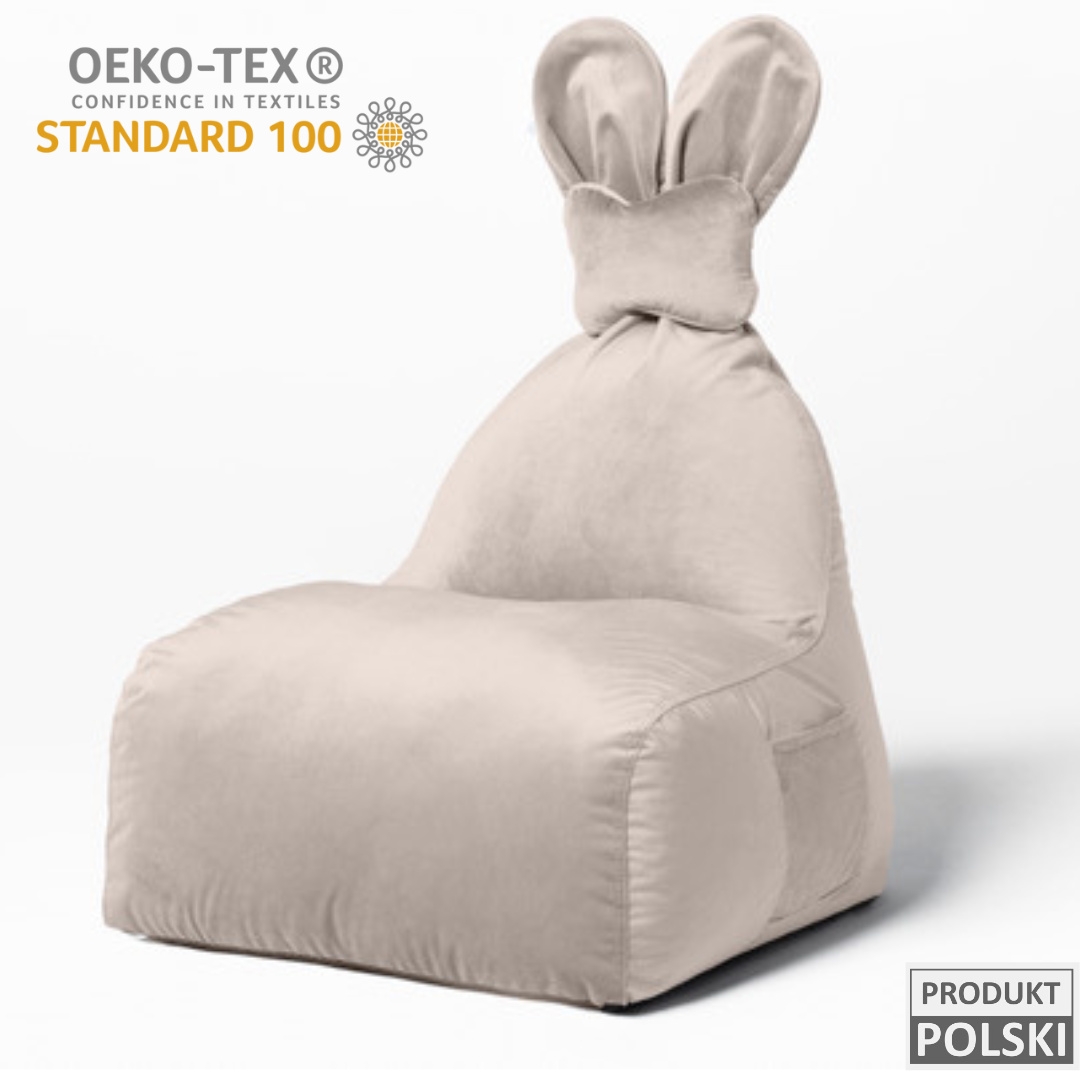 Uszata pufa siedzisko z oparciem Funny Bunny VELVET – Beżowa