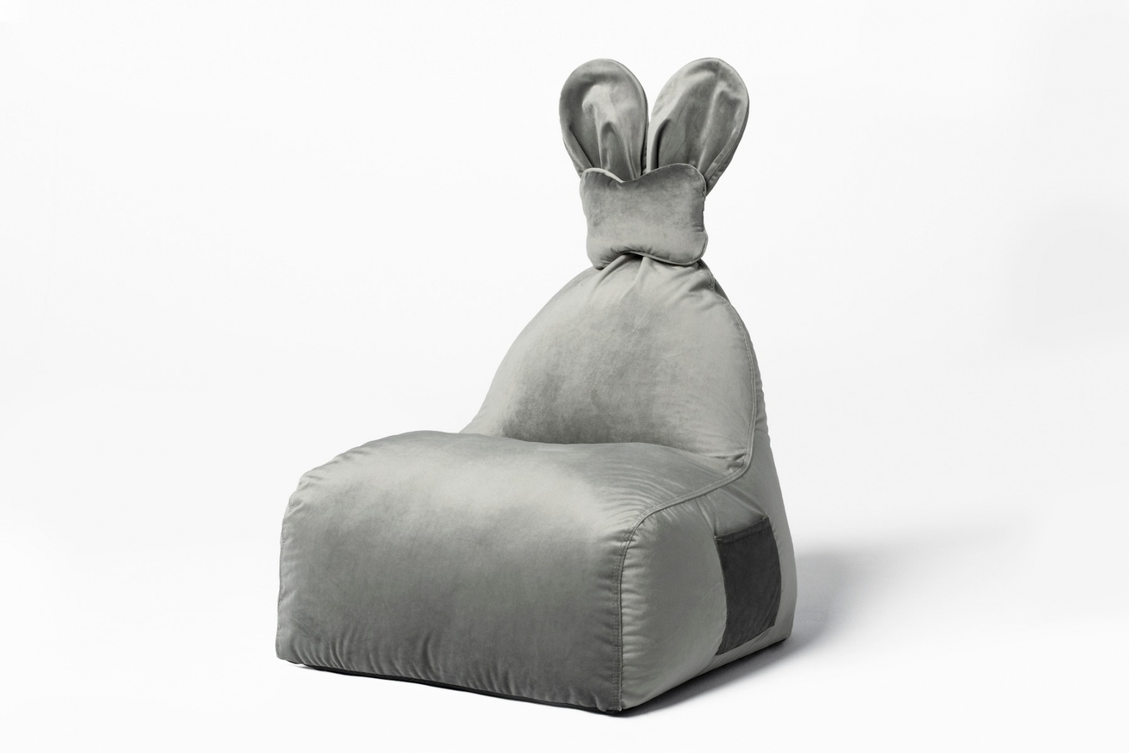 Uszata pufa siedzisko z oparciem Funny Bunny VELVET – Szara