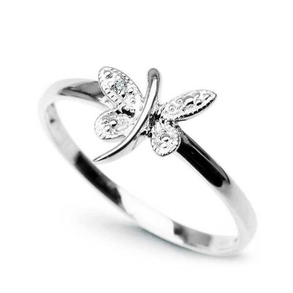 Złoty pierścionek motyl z diamentami białe złoto Staviori