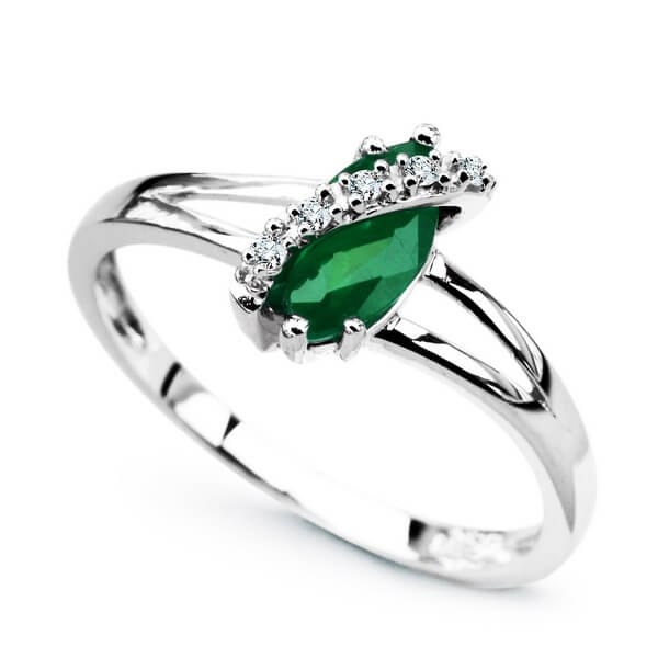 Złoty pierścionek szmaragd i brylanty białe złoto Staviori