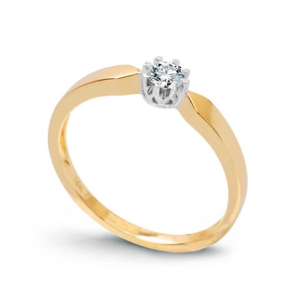Złoty pierścionek zaręczynowy z brylantem żółte i białe złoto Staviori
