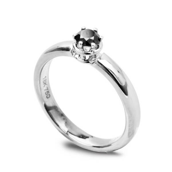Złoty pierścionek zaręczynowy z czarnym diamentem białe złoto Staviori
